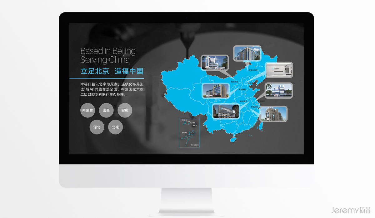 诊疗体系:聚焦 “舒适化”,“牙齿种植中心” 突出 “立得用” 专利技术,“儿童齿科” 传递趣味无压体验,“美学修复” 用 “牙齿焕新 1mm,幸福感知 100%+” 强化关联,各中心均按 “核心优势 + 技术亮点 + 用户价值” 呈现。