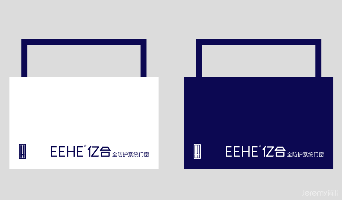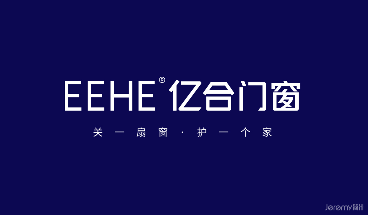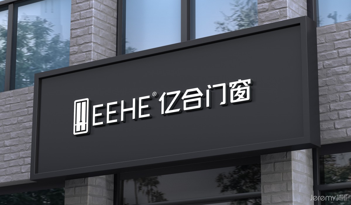 以 “EEHE亿合” 为核心文字符号,采用简洁大气的无衬线字体设计,线条规整、粗细均匀,既体现门窗产品的工业质感与精准工艺,又确保在不同应用场景(品牌手册、门店招牌、产品包装等)中具备清晰的可读性。英文“EEHE” 字母对称呼应,强化视觉平衡感,中文“亿合”字形方正饱满,传递品牌稳健、可靠的气质。