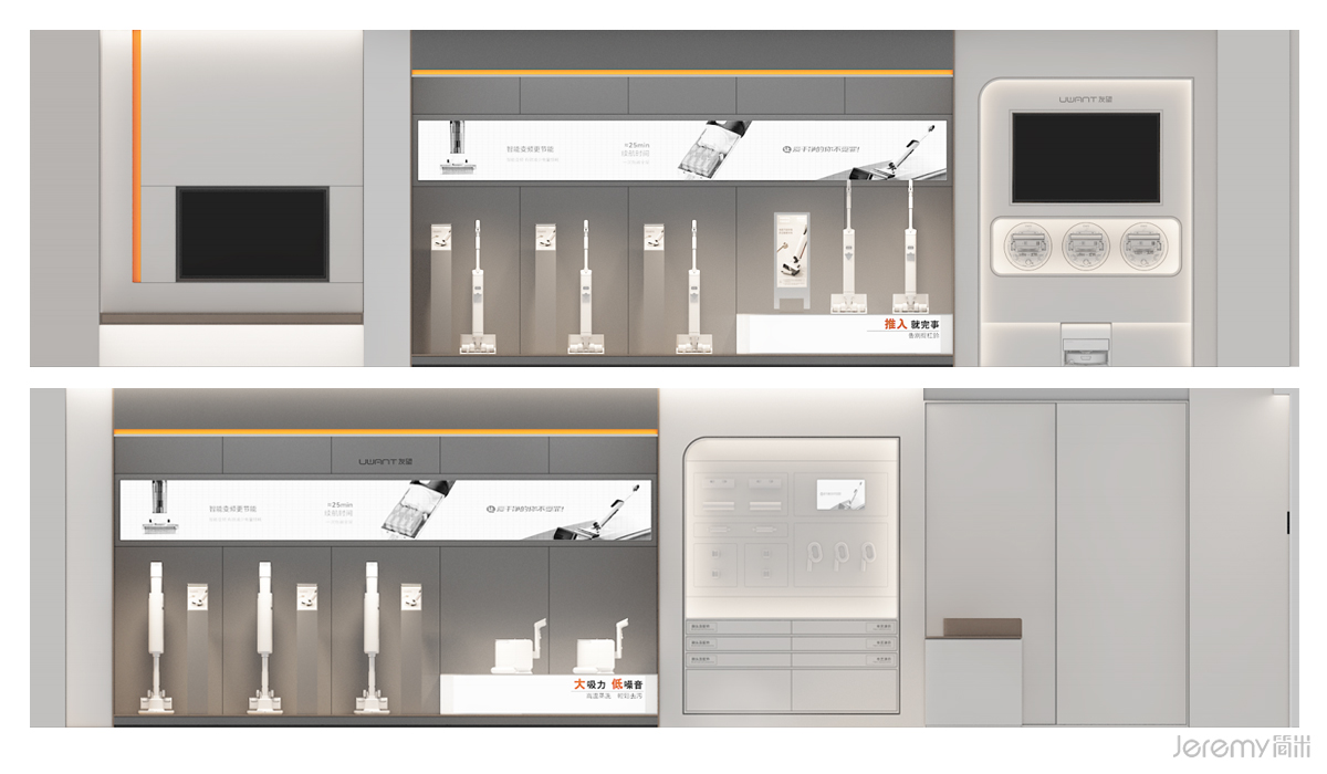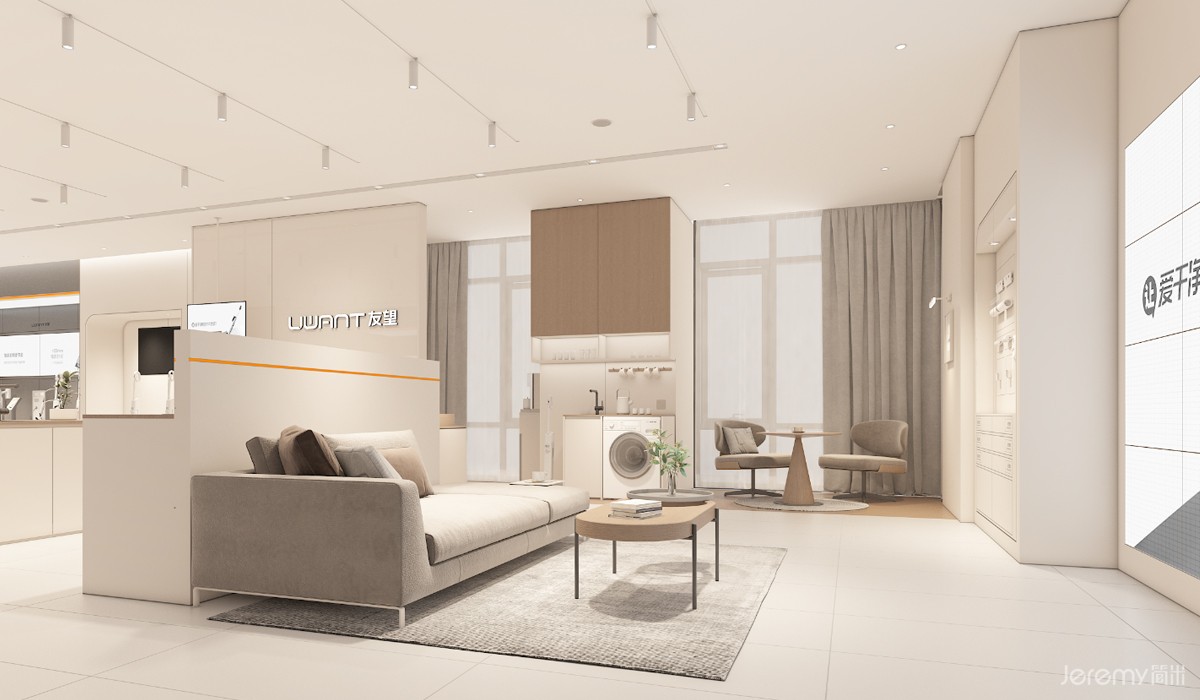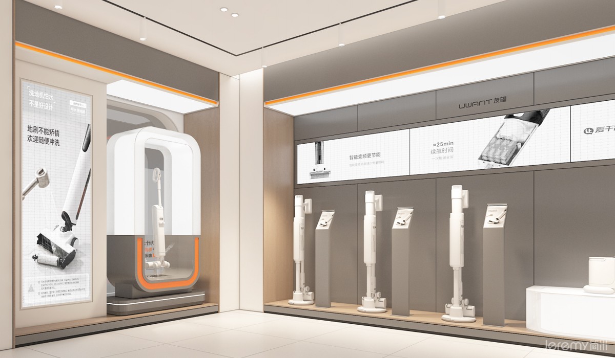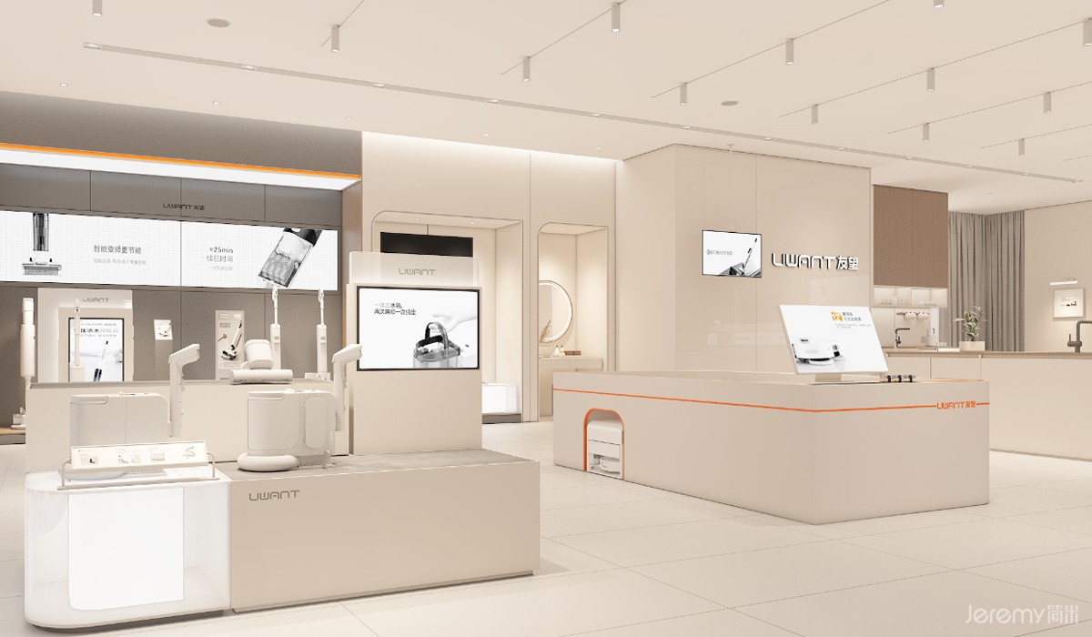 友望(UWANT)作为专注于智能清洁领域的新锐品牌,其形象与体验尤为重要。简米(Jeremy)受友望委托,为其打造一套兼具品牌辨识度、场景沉浸感与运营高效性的终端 SI(空间识别)系统,实现从品牌理念到终端体验的完整落地。