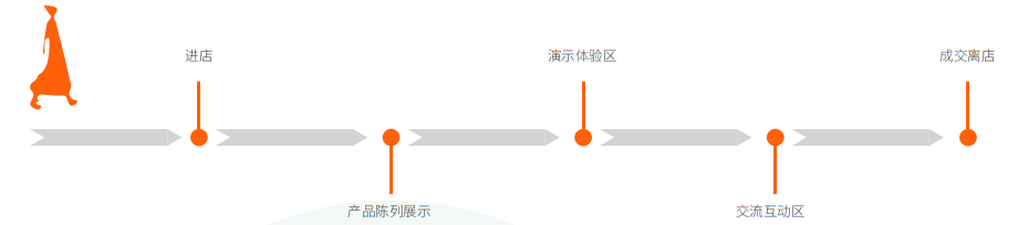 吸引进店 → 场景感知 → 产品体验 → 技术理解 → 信任建立 → 成交转化