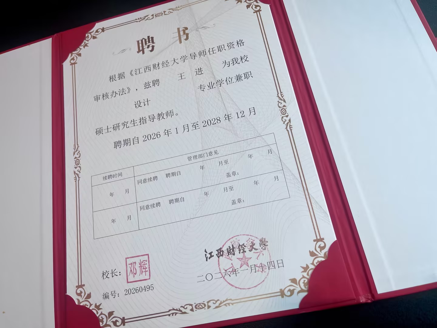 近日,我司创始人王进先生收到江西财经大学正式聘书,受聘为该校设计专业学位硕士研究生兼职指导教师。