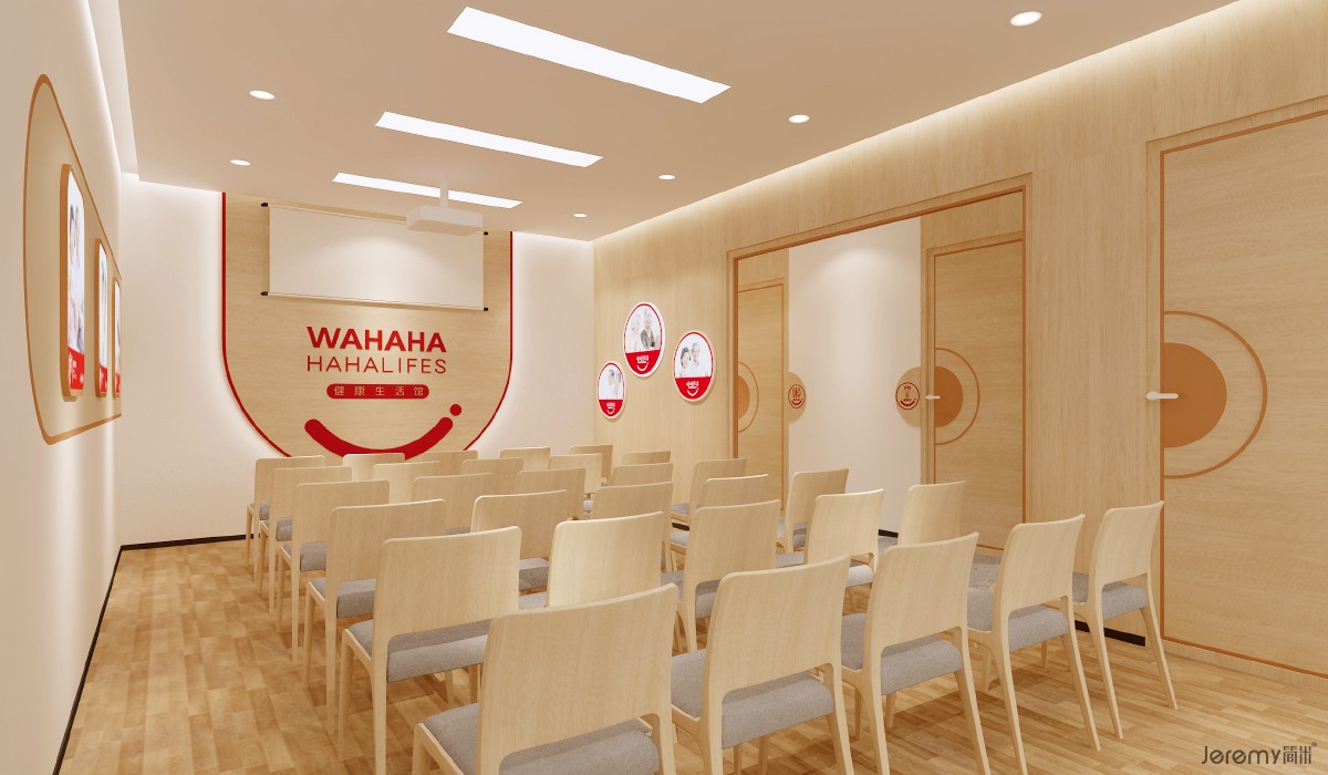 本次简米项目组打破传统健康馆 “产品推销” 的单一属性,将空间定义为社区老人健康生活集散中心,通过场景营造与情感链接,实现 “哈哈乐活 = 健康生活方式共同体” 的用户认知植入。设计核心逻辑为:先建立心理层面的关怀认同,再自然承接产品与服务转化,使销售成为情感体验的必然结果。