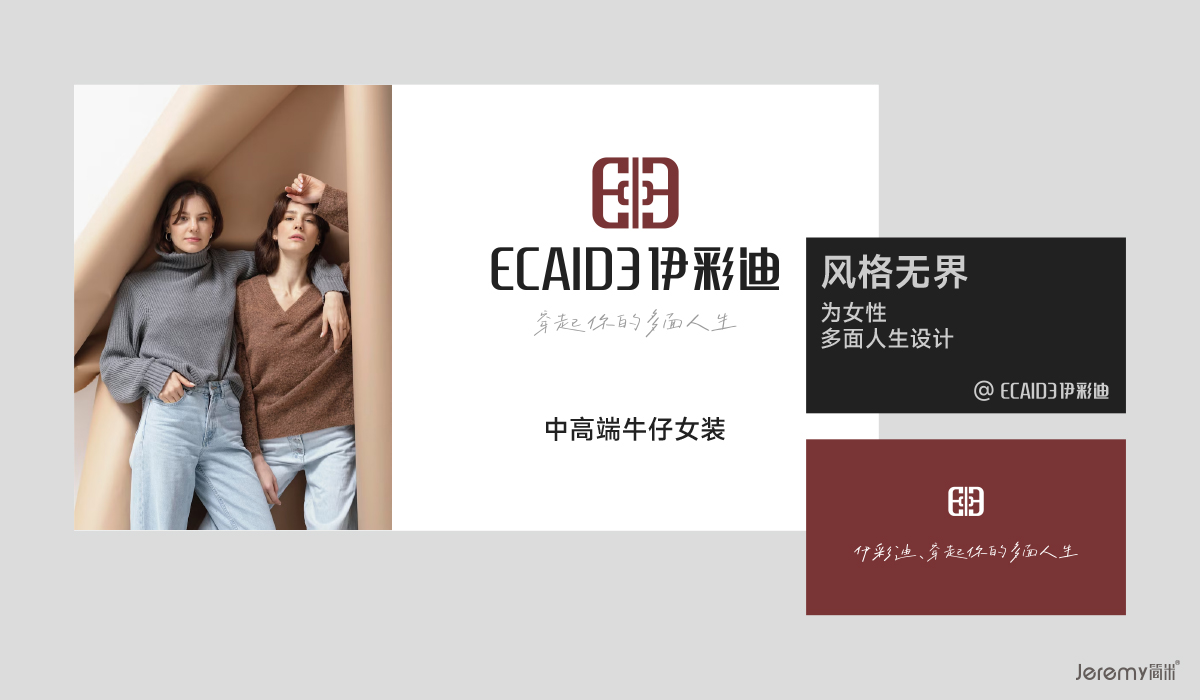 当东方美学与现代时装碰撞,当经典基因与多元风格融合,简米设计携手客来因蓝为其中高端牛仔女装品牌伊彩迪量身打造VISI系统全案,以符号为语、以规范为骨、以体验为魂,让品牌理念穿透视觉表象,深植消费认知。