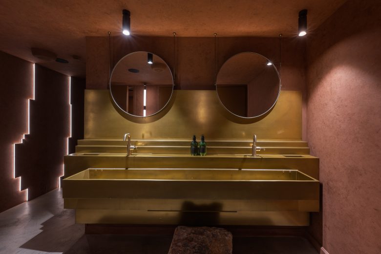 该店面设计由餐饮与音乐酒吧两部分空间构成:一个美食酒吧,里面有泛亚美食、现场音乐、最好的DJ的煽动性曲目、调酒师的鸡尾酒。设计师们主要从纹理砖墙、全景窗户和山墙屋顶的几何结构来展示该空间的设计美。